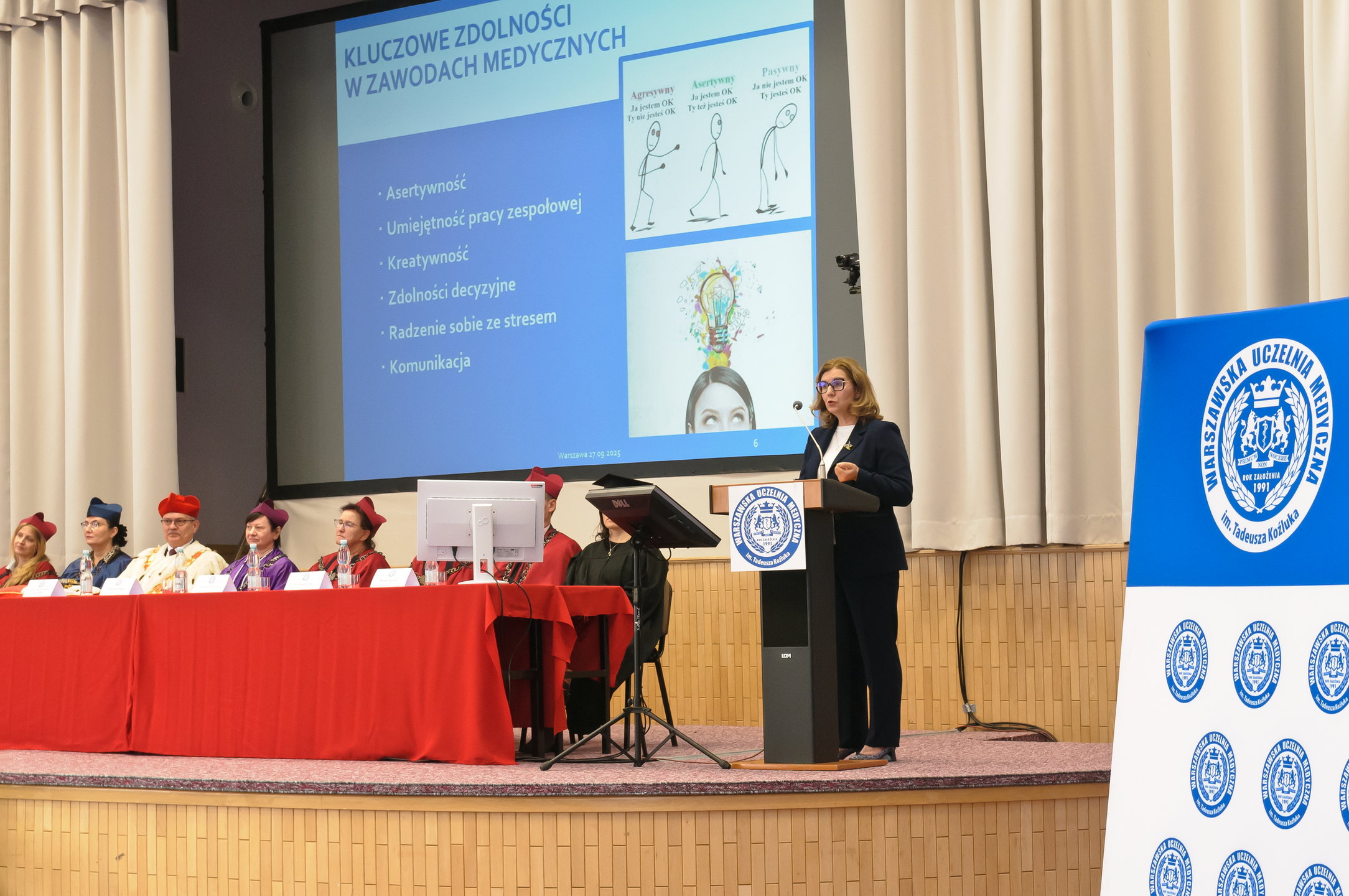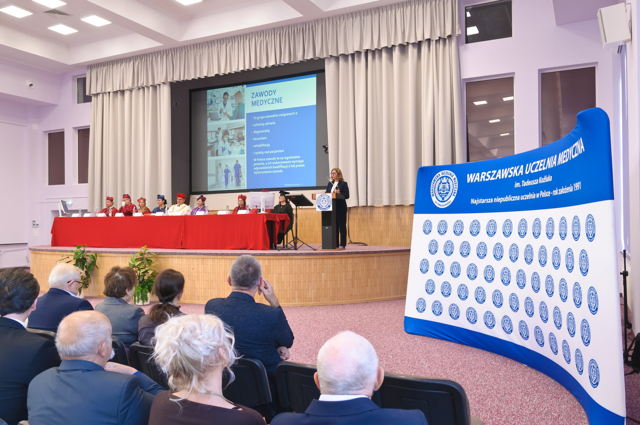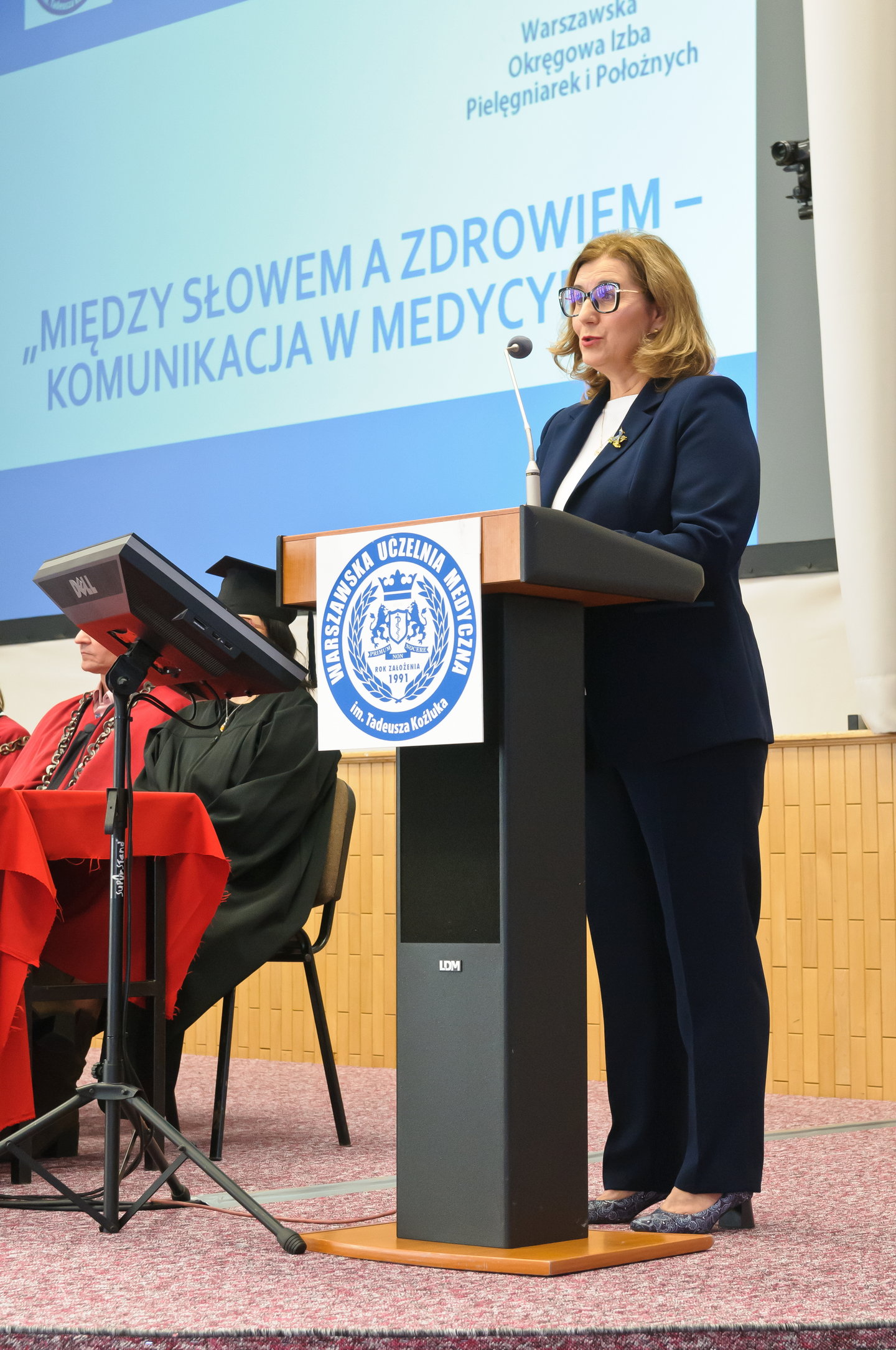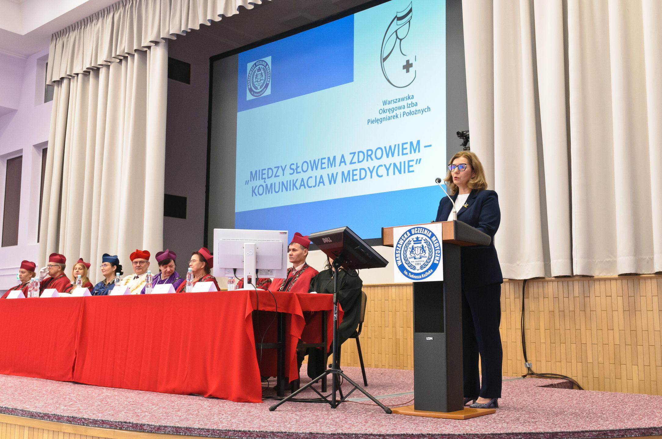 Wykład inauguracyjny „Między słowem a zdrowiem – komunikacja w medycynie” wygłosiła dr n. med. Barbara Mazurkiewicz - Wiceprzewodnicząca Warszawskiej Okręgowej Rady Pielęgniarek i Położnych oraz przewodnicząca Komisji ds. położnych, adiunkt w Zakładzie Dydaktyki Ginekologiczno-Położniczej Wydziału Nauk o Zdrowiu Warszawskiego Uniwersytetu Medycznego.