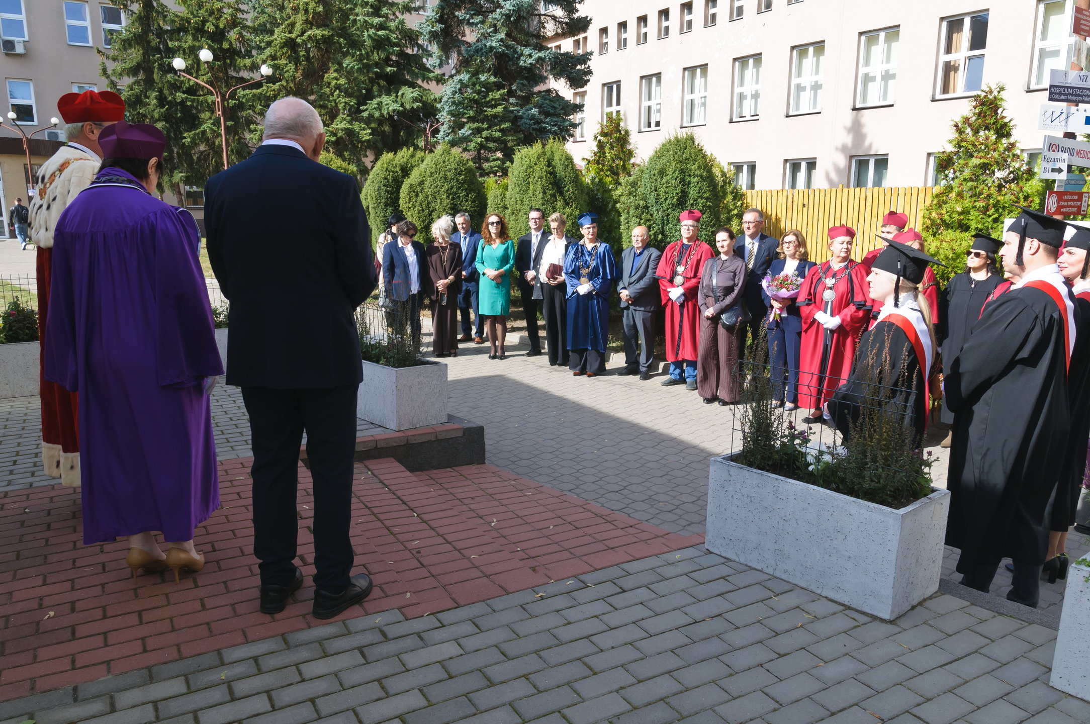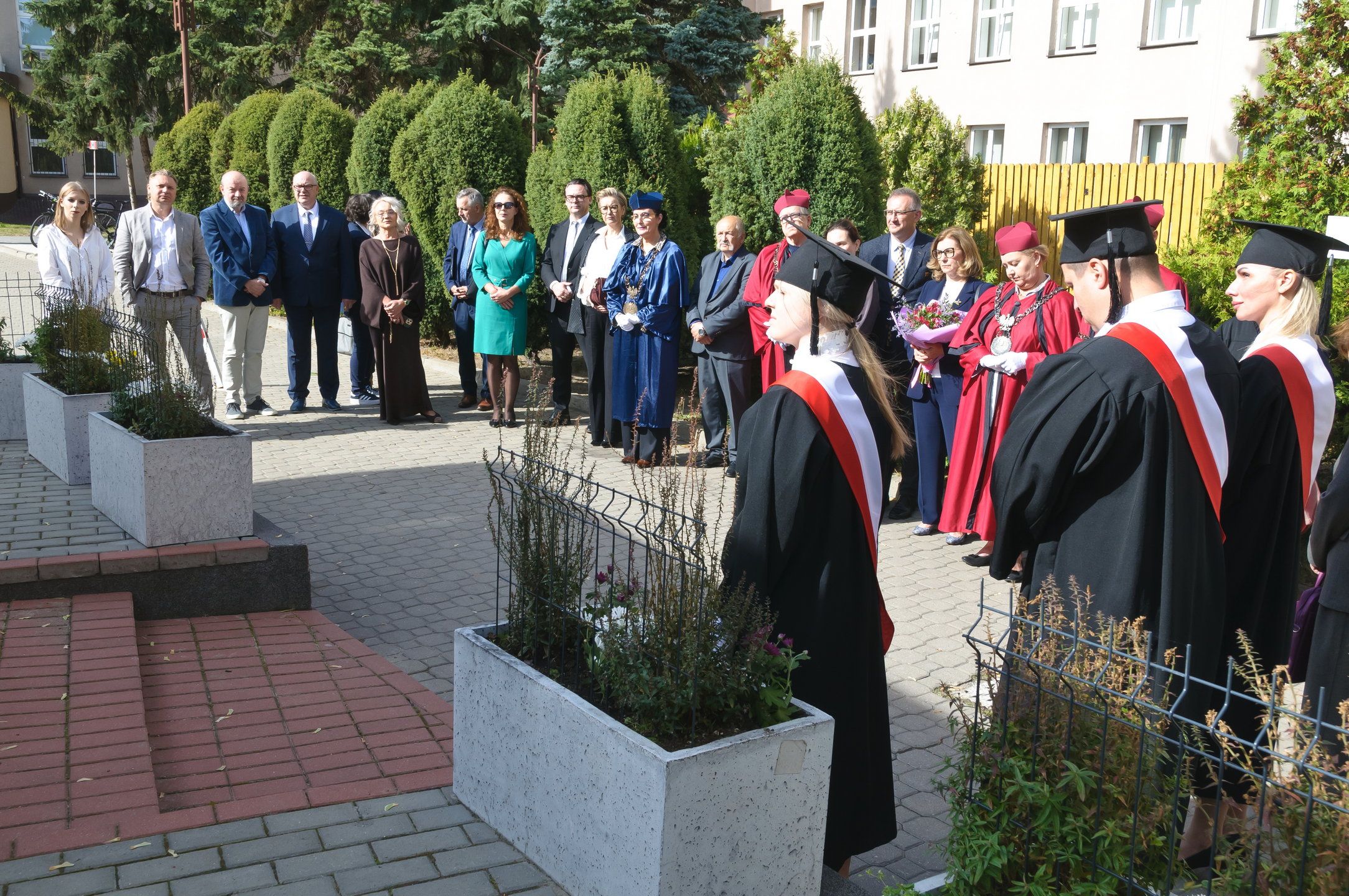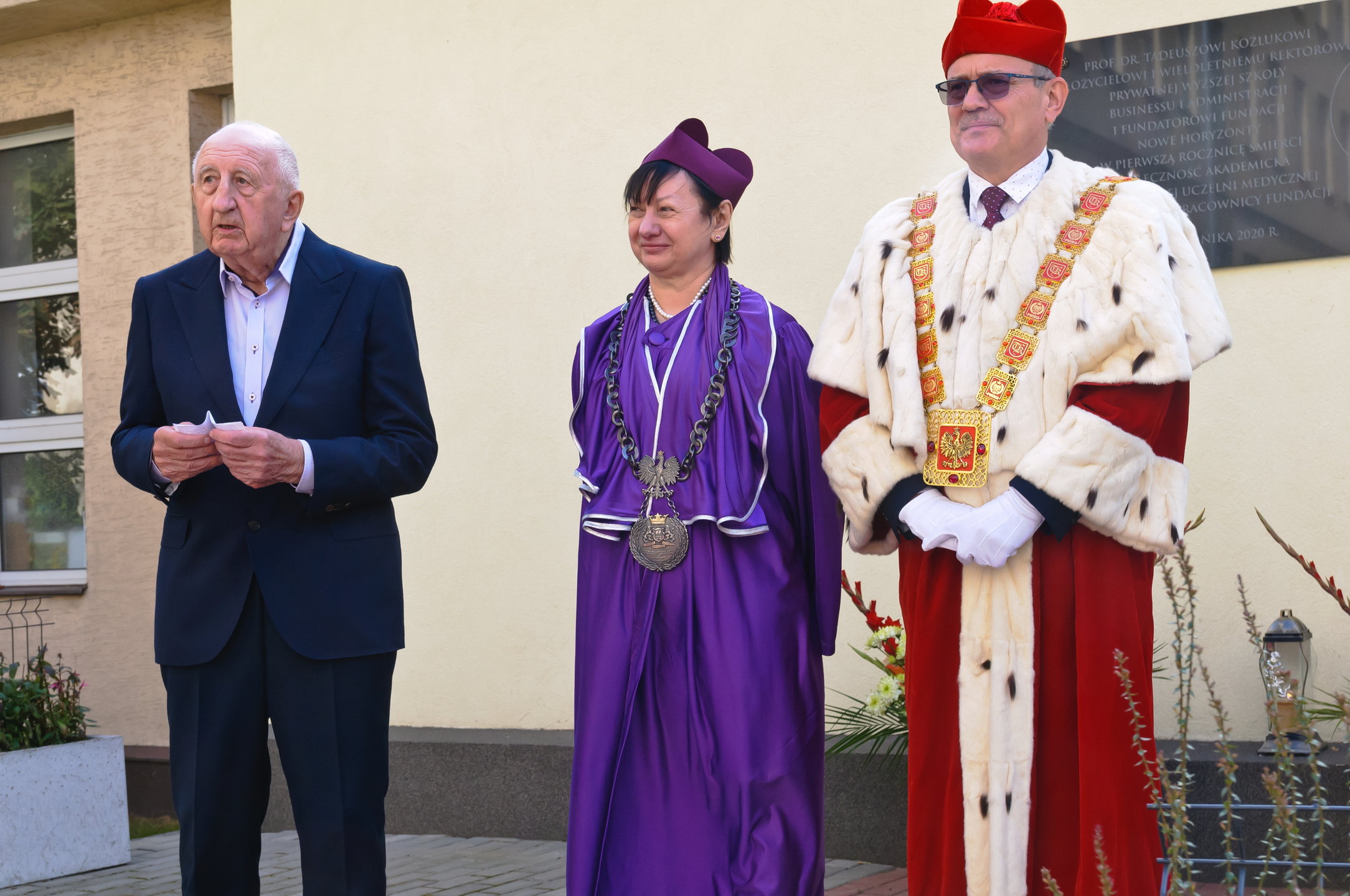 Po uroczystości członkowie Senatu uczelni oraz zaproszeni goście zgromadzili się przed tablicą upamiętniającą fundatora i patrona Warszawskiej Uczelni Medycznej – prof. Tadeusza Koźluka.